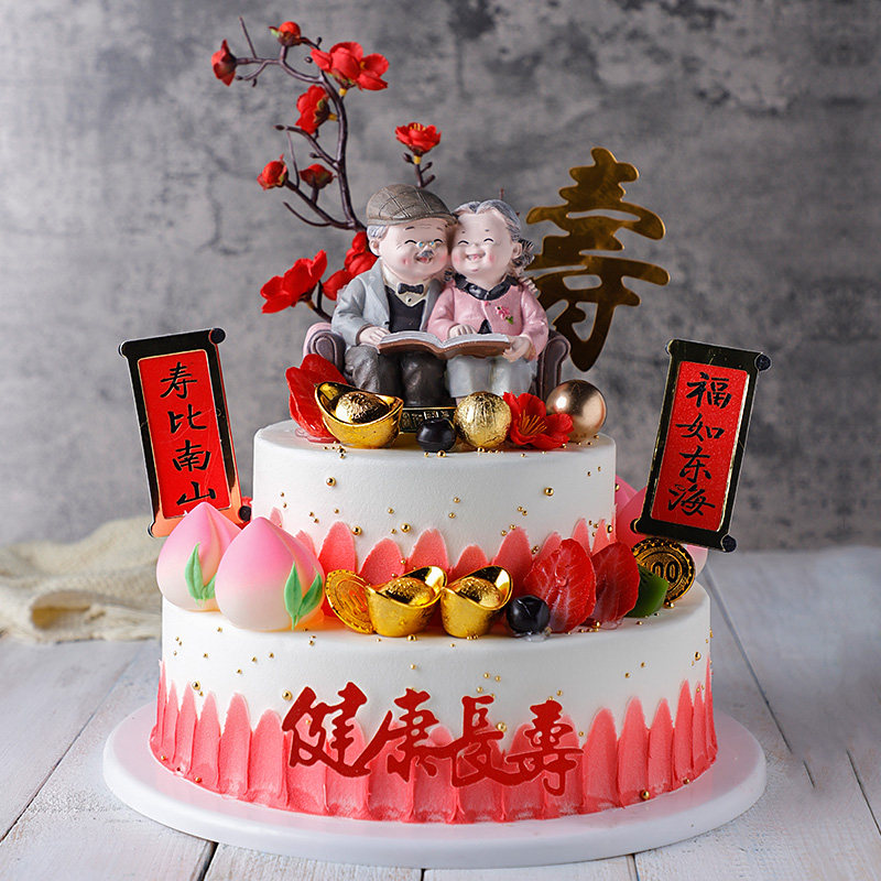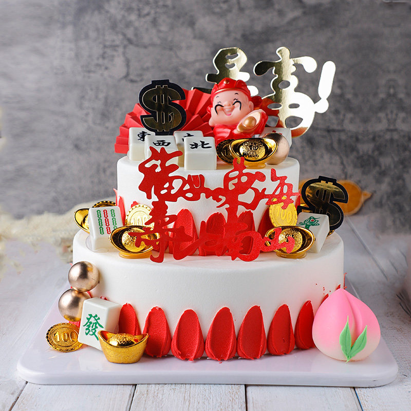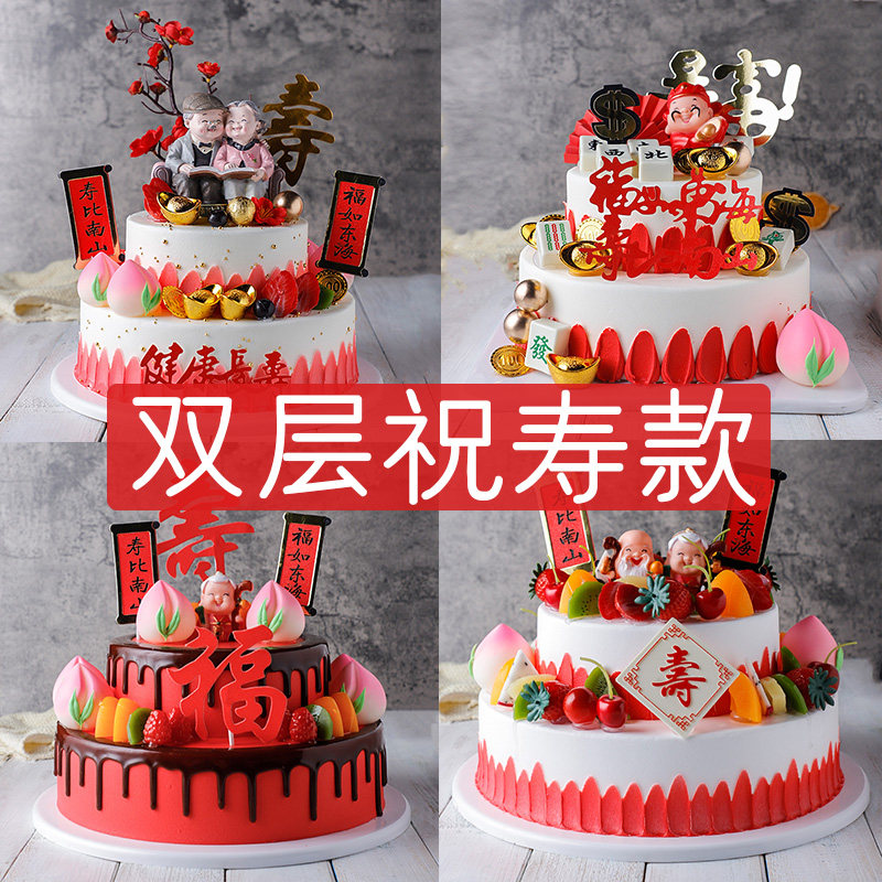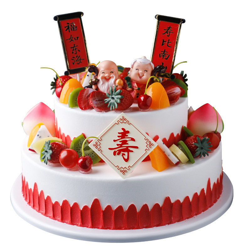 Cake model simulation 2021 new double-layer birthday gong shou bo lao life peach fruit birthday cake sample