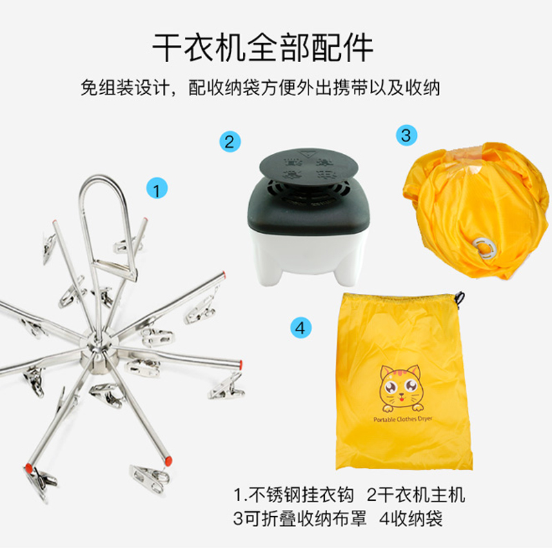 Small clothes dryer Home drying machine portable folding and folding speed dry clothes student Dormitory Travel Dryer