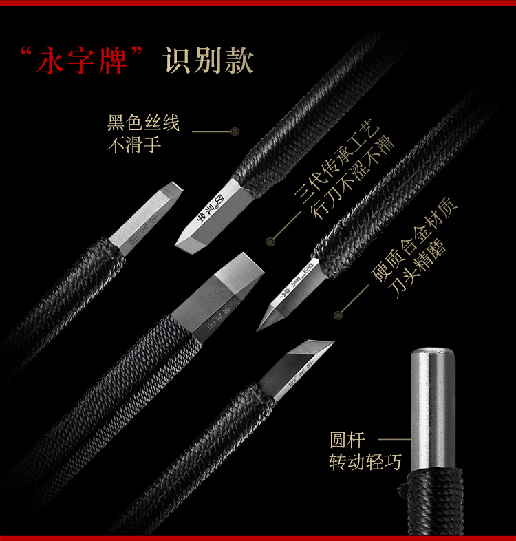 Yongzi brand seal cutting knife classic edge series beginners set seal carving seal stone carbide carving knife