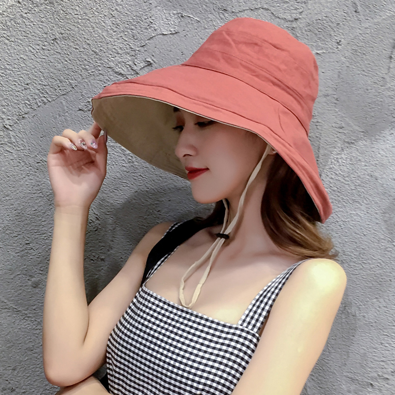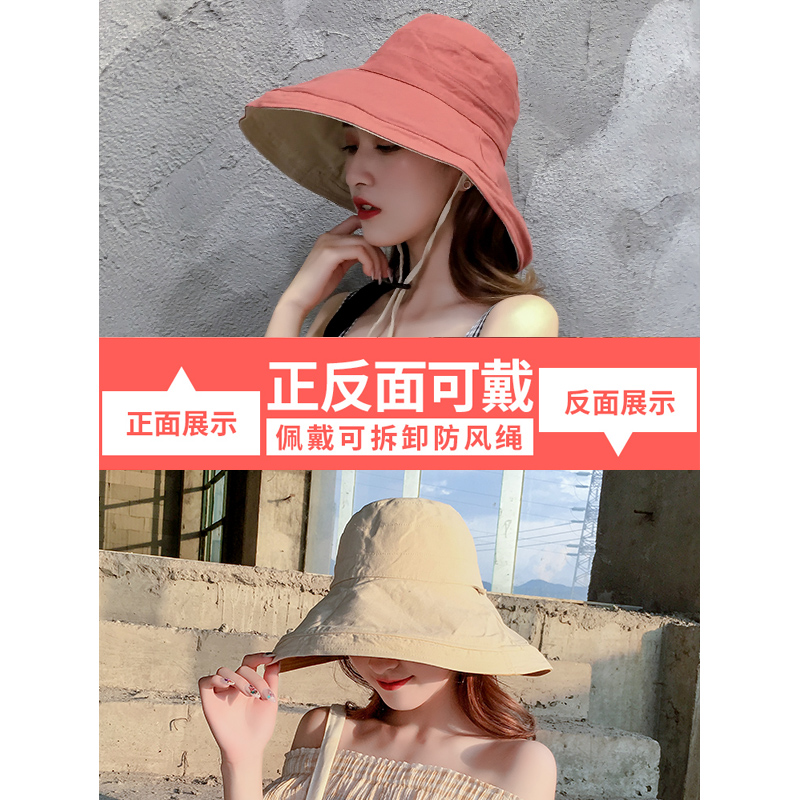 Double sided Korean version sunscreen hat children 100 hitch sun protection UV rays big along the shade day ensemble red fisherman hat lady