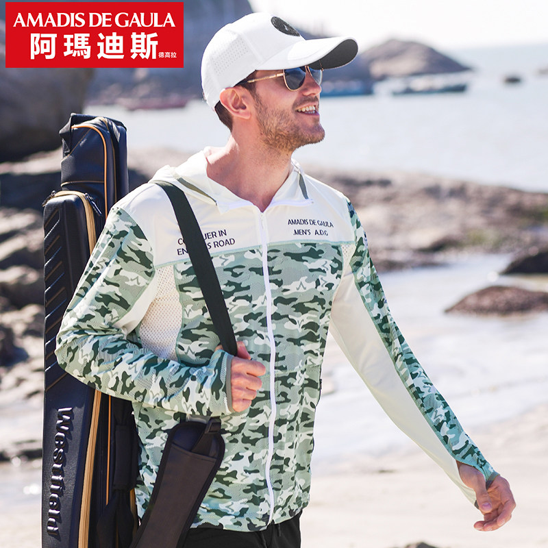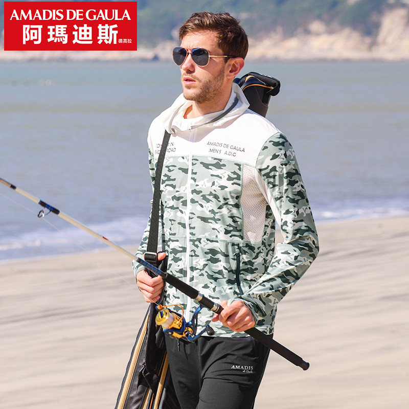Amadis 20 years new fishing sunscreen male ice silk breathable ultra-thin fishing dress for men's fishing clothes