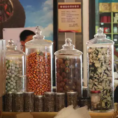 Extra-large sealed bottle glass storage tank Large high display tank Tangerine peel medicinal herbs small green citrus floor-standing glass tank