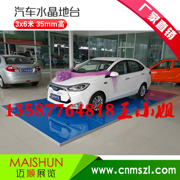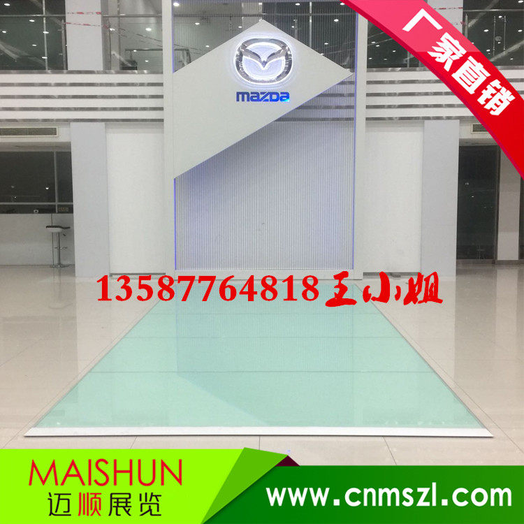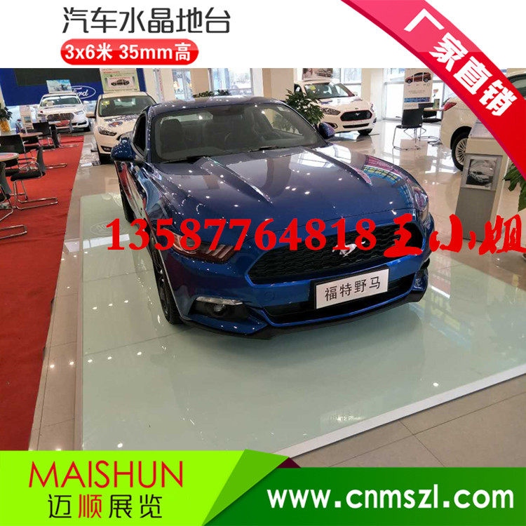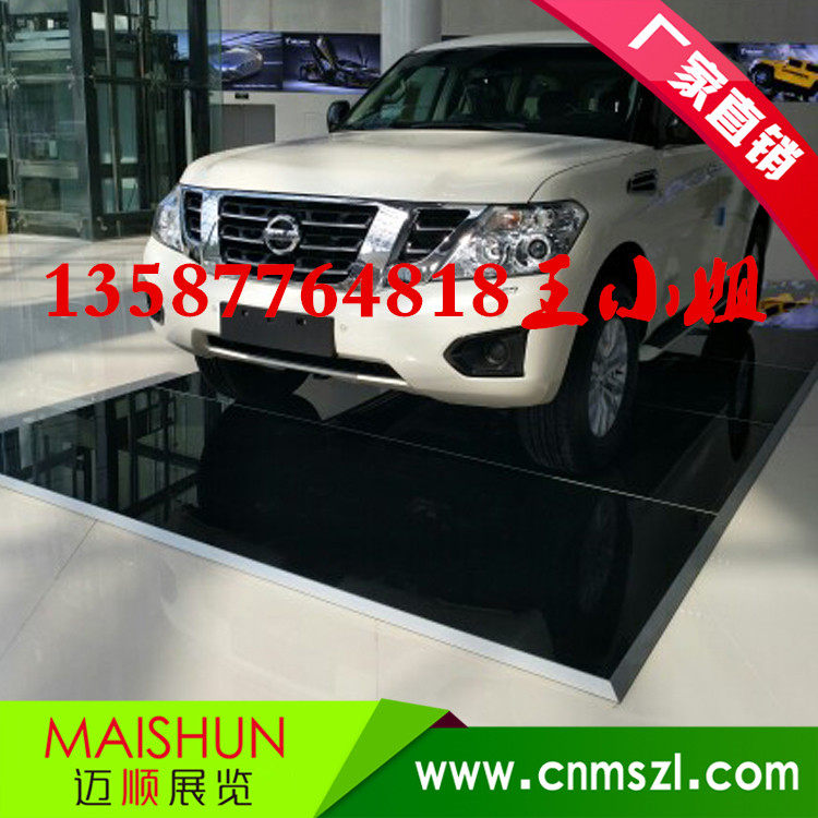 Auto show crystal floor appliqué black paint tempered glass auto ultra-thin beveled stand