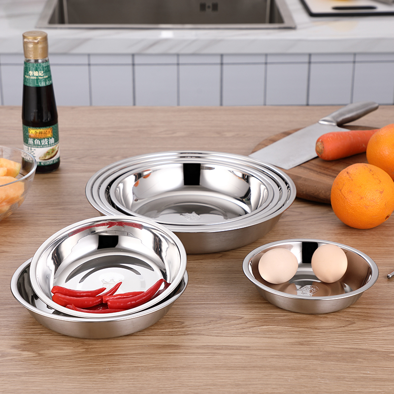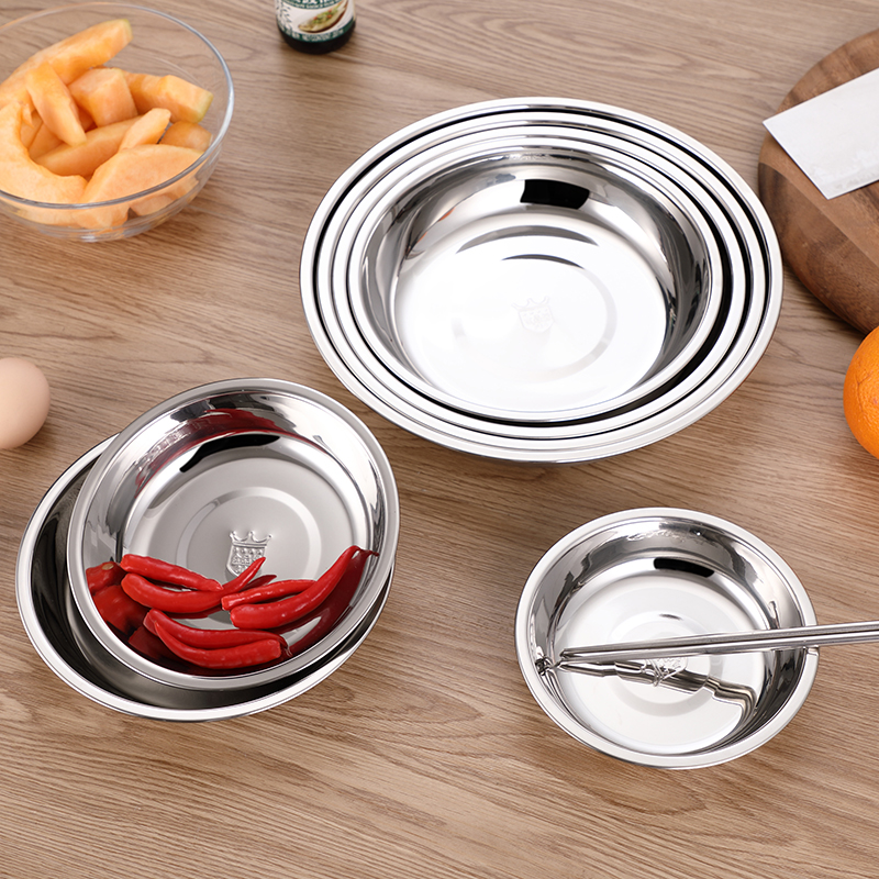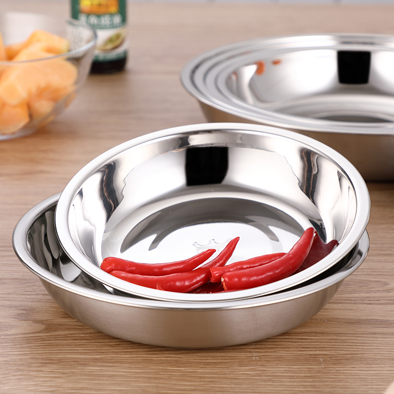 Thickened 304 stainless steel plate large disc deepened flat plate barbecue plate household dish plate children's tableware