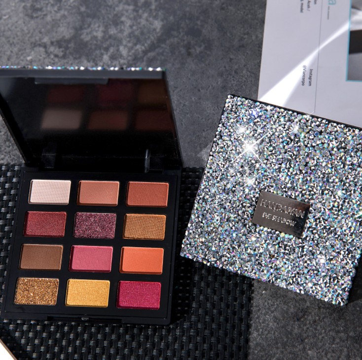The red diamond pipesand 12 colored eye shadow girl shiny matte pearl disk maple leaf palm - flower stage cross border