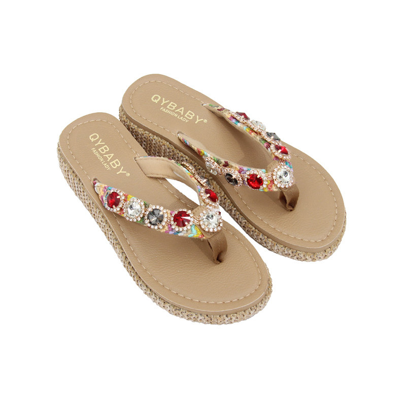 Tide brand 2023 new rhinestone flip-flops women's beach shoes summer wear non-slip thick-soled slope heel flip-flops sandals and slippers
