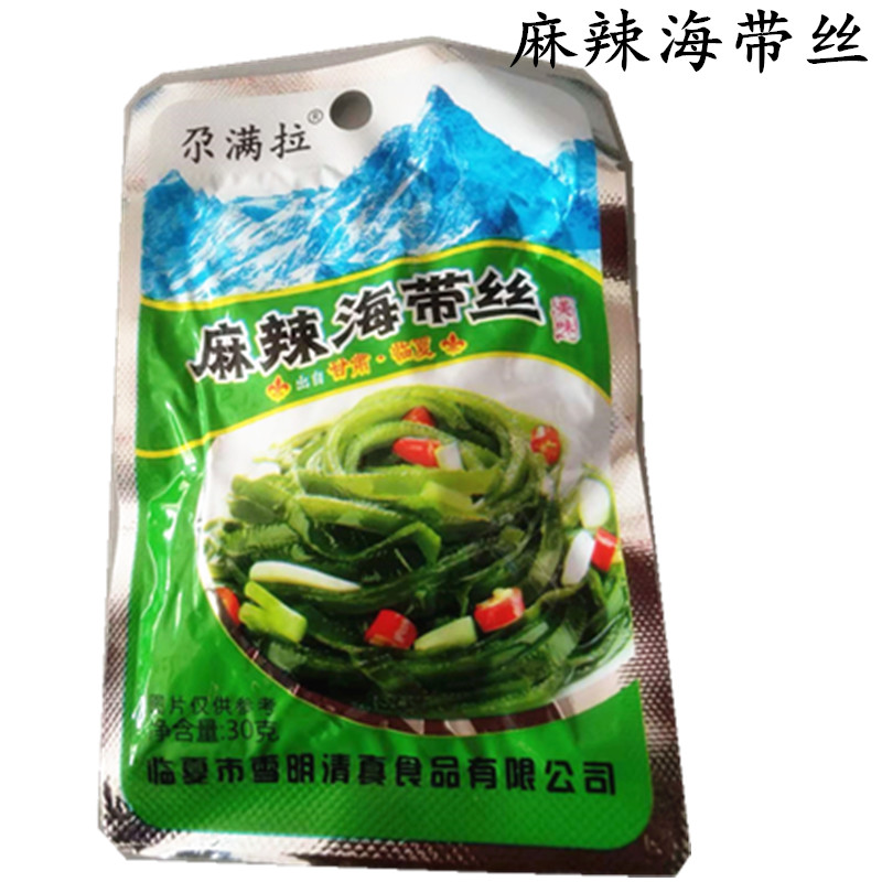 Linxia Halal food Mustard snacks Gammanla convenient spicy kelp silk meals Small package 25 grams 50 bags