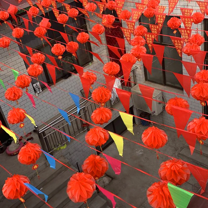 Yard decoration Triangle bunting Pull flower Happy word small paper lantern Wedding opening celebration Outdoor decoration Wedding supplies