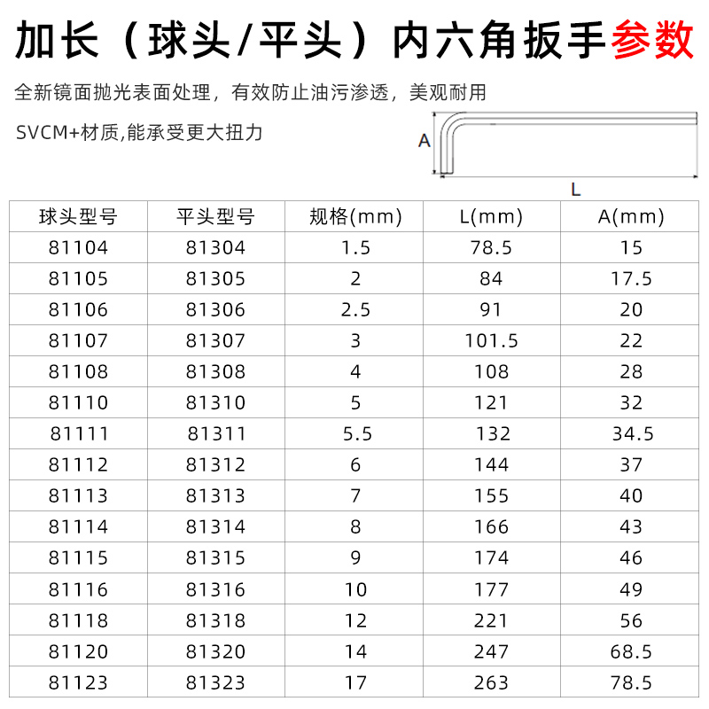 Starr extended ball head flat head Allen wrench single inner hexagon 3 4 5 6 8 12 16 14 17mm