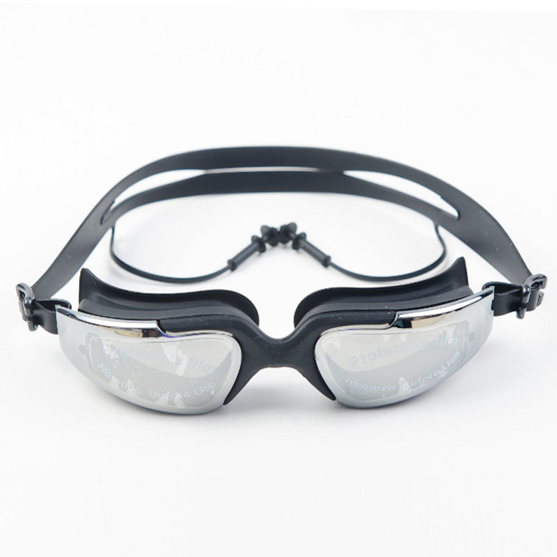 Swimming glasses HD waterproof anti-fog swimming glasses male and female large frame plated mirror with earplug swimming goggles