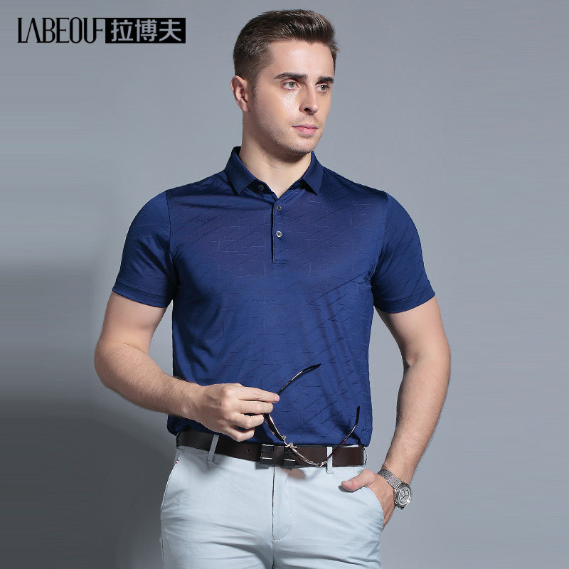 Labov mulberry silk T-shirt middle-aged man short sleeve slim fit turned polo shirt dad real silk big size casual dress