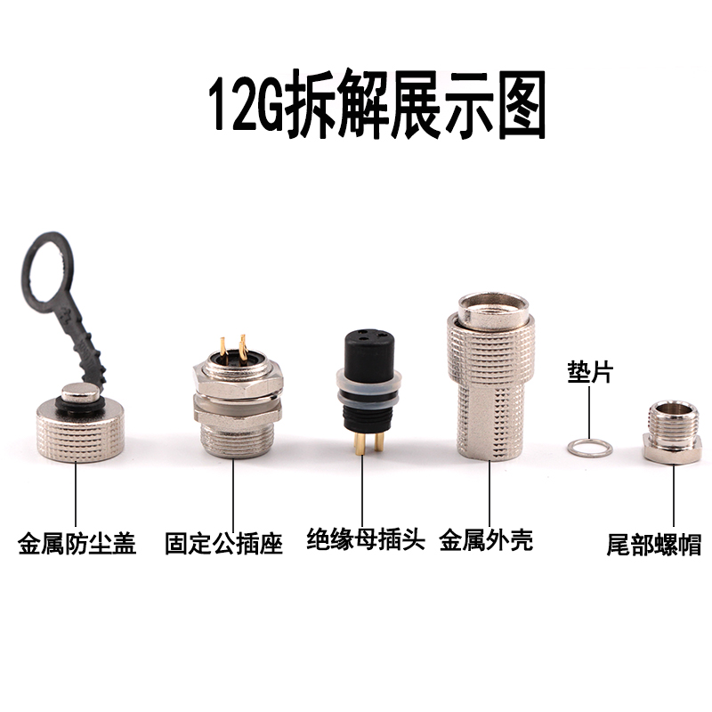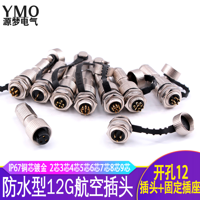 Copper Core gilded waterproof IP67 Air plug 12G-2 Core 3 Core 4 Core 5 Core 6 Core connector open 12mm