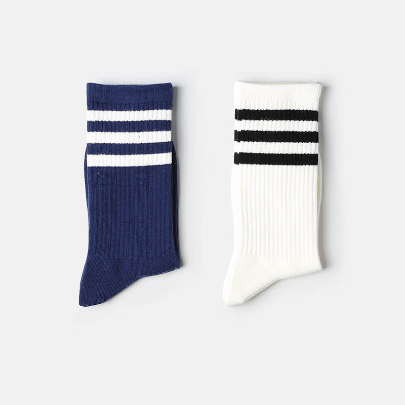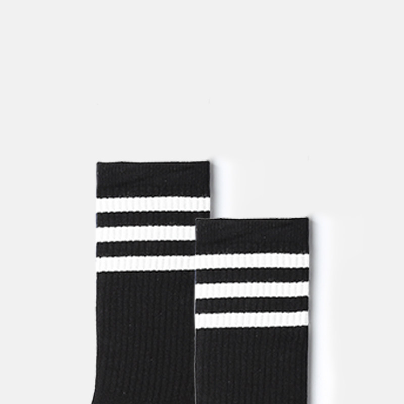 Socks men and women autumn and winter long socks with three bars Striped College Wind Sports Accessories Shark Pants Fall Black & White Middle Silo Socks-Taobao