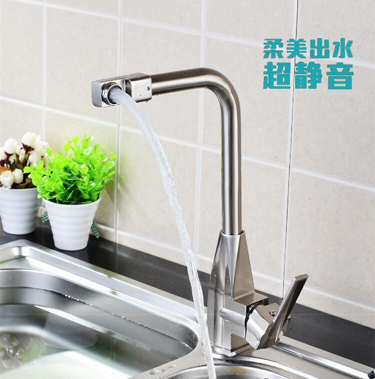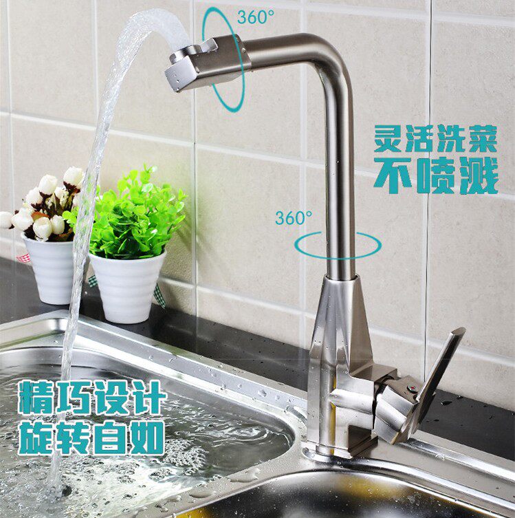 Kitchen hot and cold tap full copper single-hole wire drawing washbasin 304 stainless steel sink can be rotated