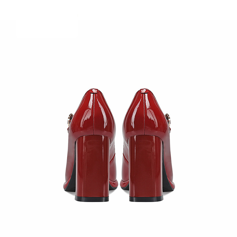 Round head women's shoes spring tide shoes 2021 new red patent shoes children's wedding shoes high heels wild thick heel shoes