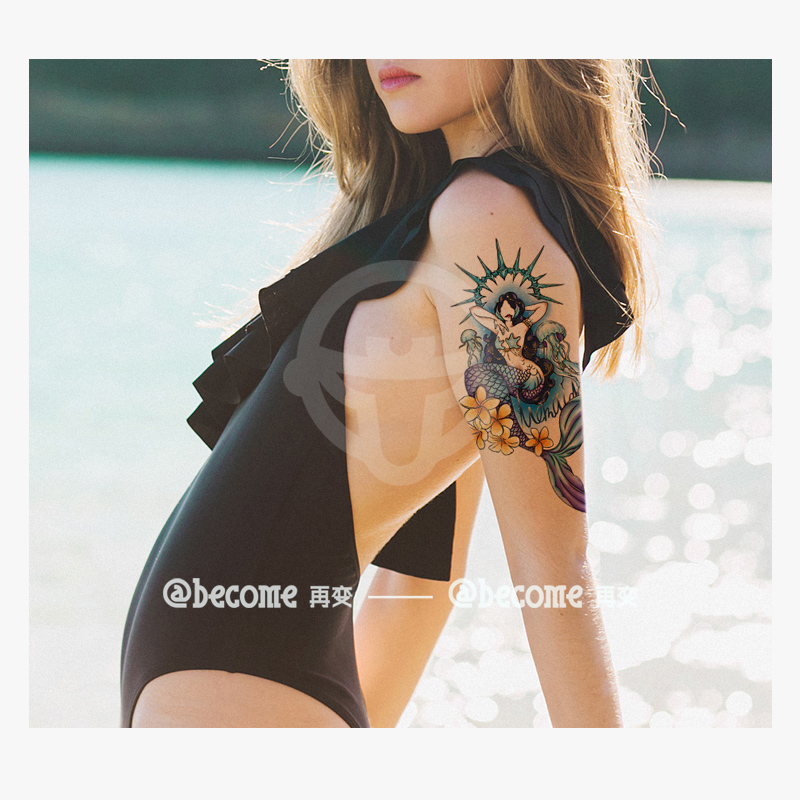 Retransform the Shanhai Mermaid tattoo tattoo arm tattoo in the wind color design woman lasting