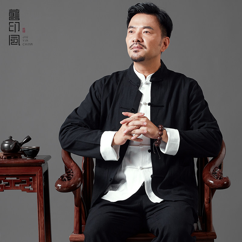 Old Print Tang Dress Men Suit Spring Autumn Money China Wind Youth Coat Retro Zhongshan Dress Chinese Cotton Numb Zen