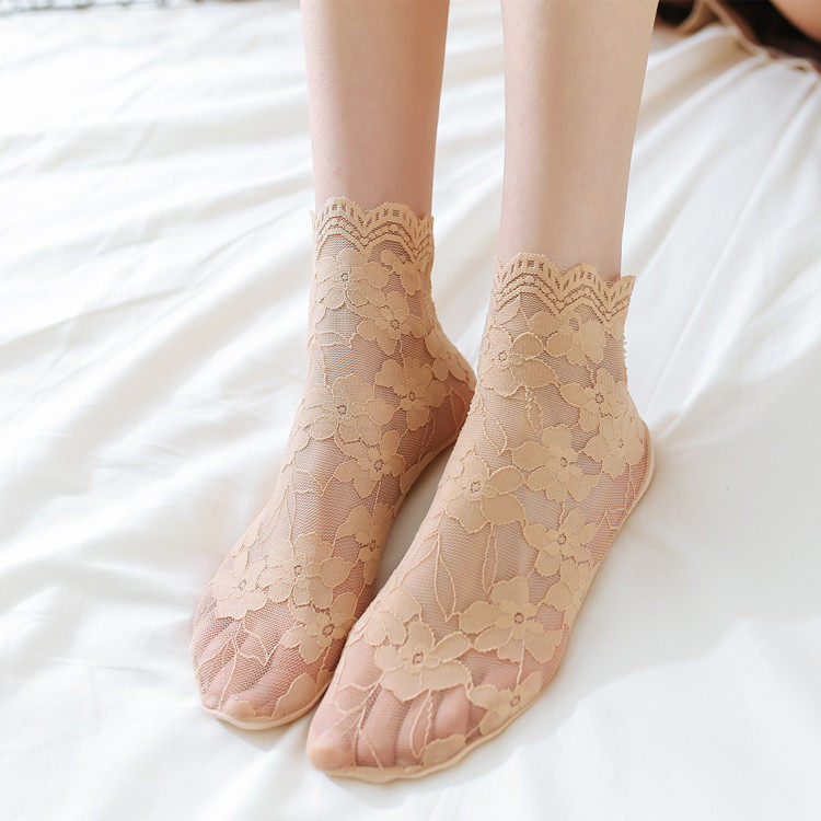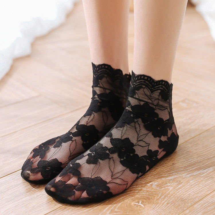 Japanese ultra-thin breathable retro Sen lace mesh socks jacquard short tube stockings fishnet socks socks women's lace socks cotton