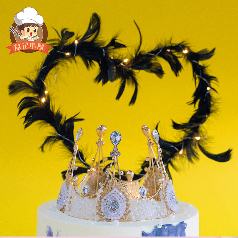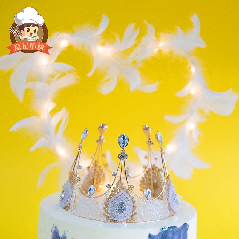Net Red Crown Angel Feather Decoration Inserted plug-in Sweet Terrace Dress with Banner Card Baking Cake Decoration