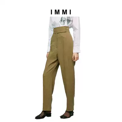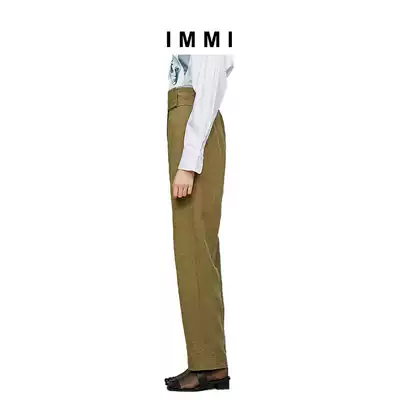(Designer brand IMMI)High waist hanging olive green washed linen trousers 191PT004X