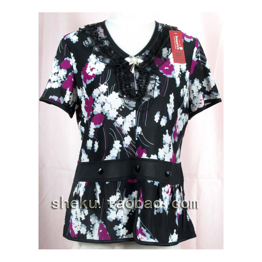 Deficit in clear cabin Mom T-shirt short sleeve wave dots mid-aged female summer T-shirt new t blood short Almond Black Blouse