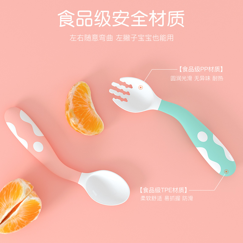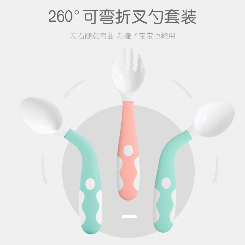 Bend spoon baby learn to eat training fork spoon baby newborn non-staple food spoon tilt head silicone children's tableware
