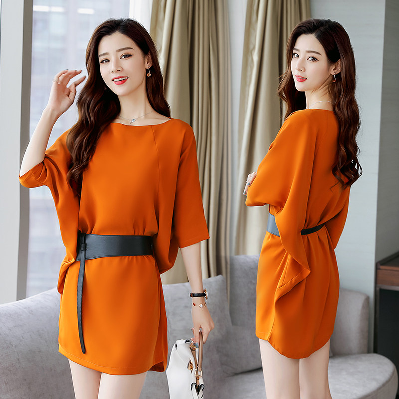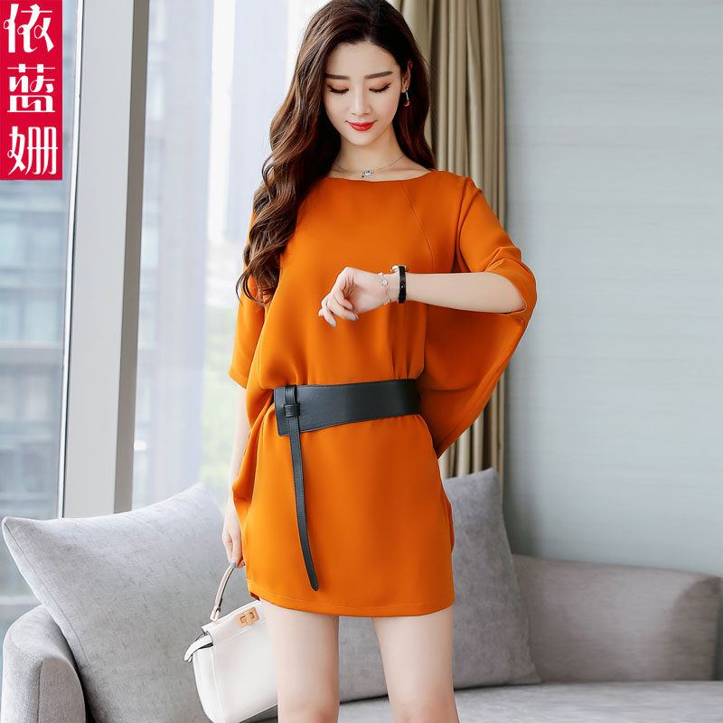 Foreign Dress Woman 2022 Spring Dress New Korean Version Bat Sleeve Loose of Lean Goddess Van's sister Summer Temperament Skirt