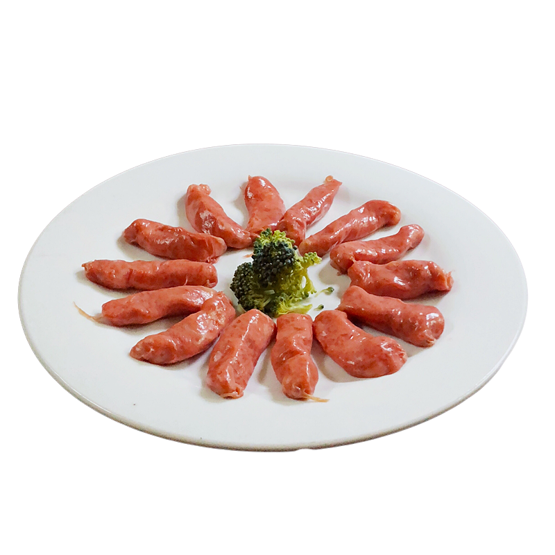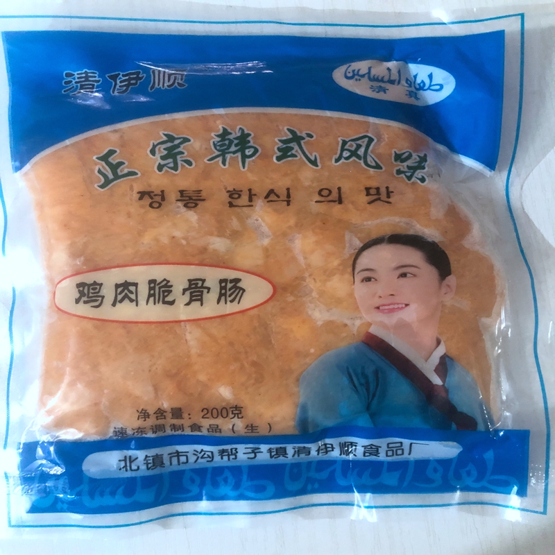 Chicken breast with skin Chicken cartilage Corn starch Soy protein isolate Water Edible salt Cotton sugar Maltose syrup Paprika Garlic powder Allspice powder Natural casings