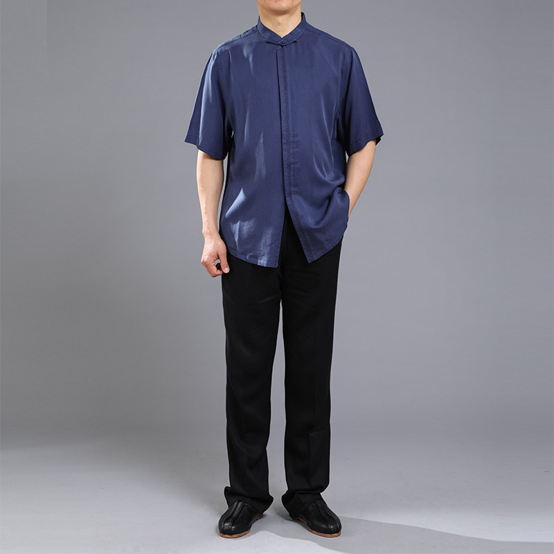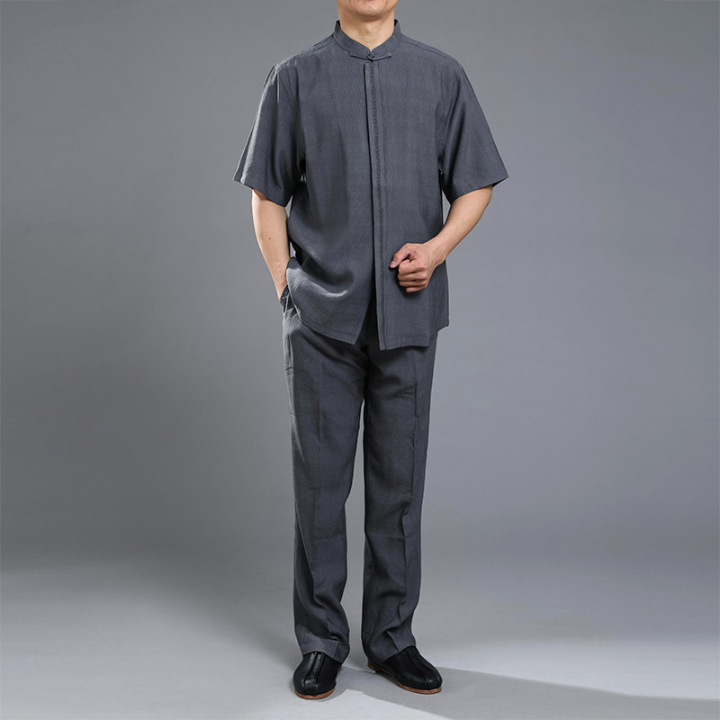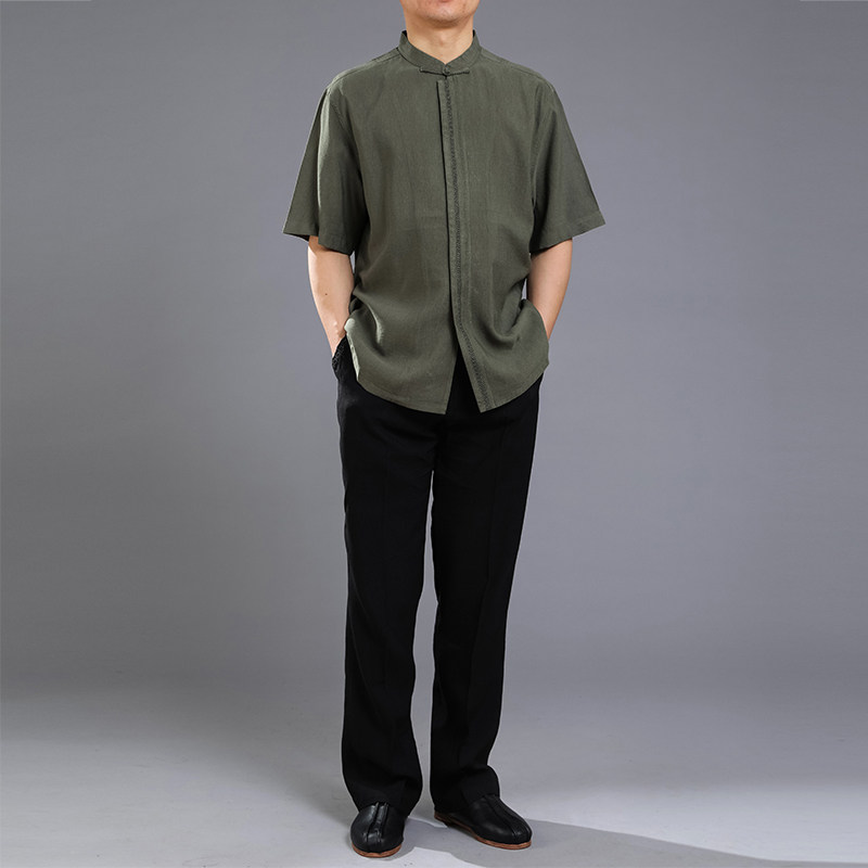 Chinese style fashion men's Tangwear summer dress Chinese embroidery lap short sleeve tops high - end men's Tanglao summer dress