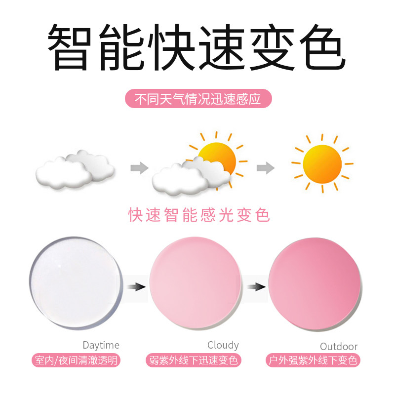 Jegunai marine series 1 56 1 61 color pink color-changing resin myopia glasses 2 pieces