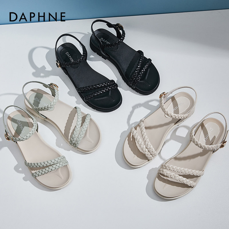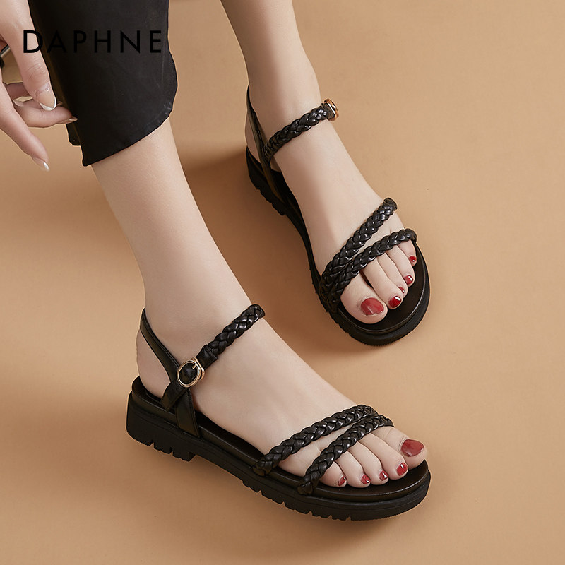 Daphne Roman Sandals Women Summer Flats 2022 New College Fairy Wind Weaving Beach Shoes Women