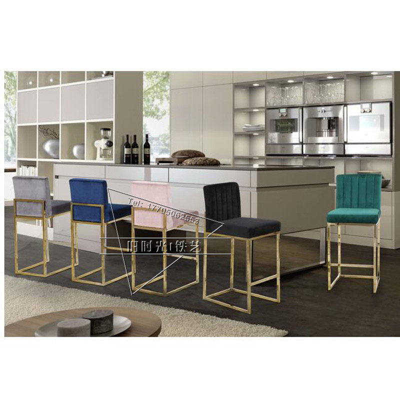 Nordic golden wrought iron bar chair simple bar chair high stool back bar stool flannel high chair home