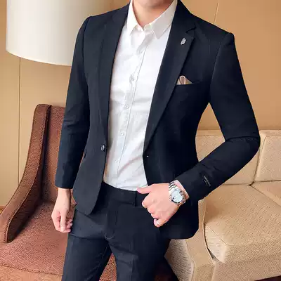 Plaid suit suit men's slim-fitting handsome casual suit two-piece trendy Korean jacket business formal single west