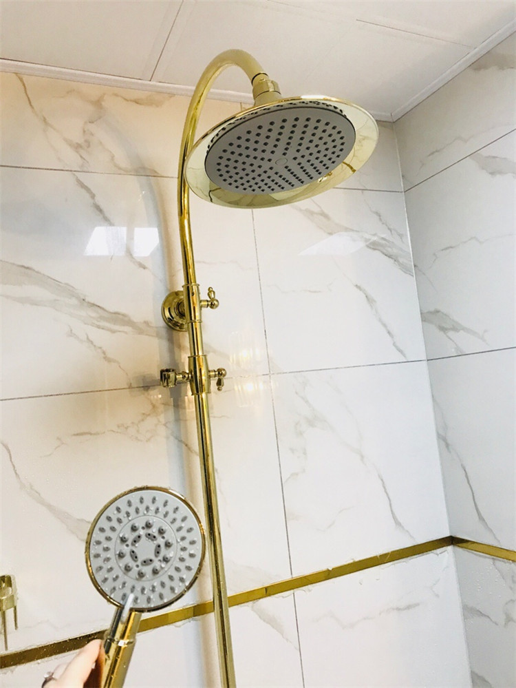 Golden full copper cold and hot water mixing valve large shower head shower head bathroom shower shower shower head suit