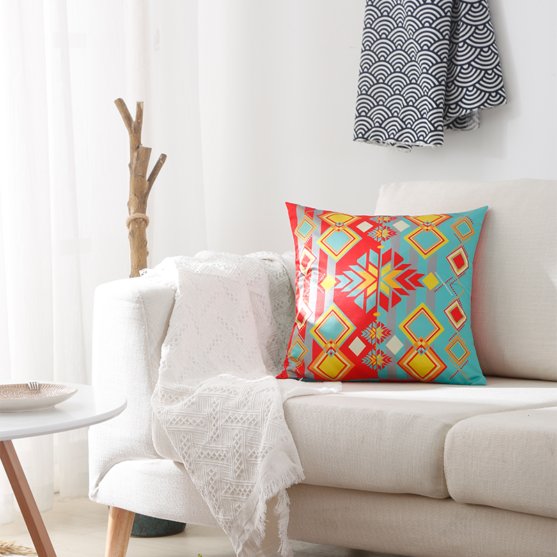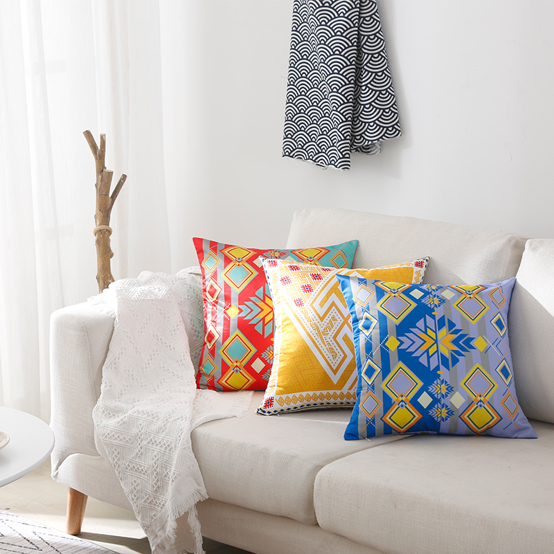 Miluojia intangible cultural heritage flower ethnic style multi-color hipster satin peach imitation hemp square pillow case Modern simple style