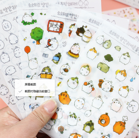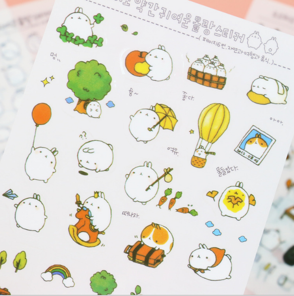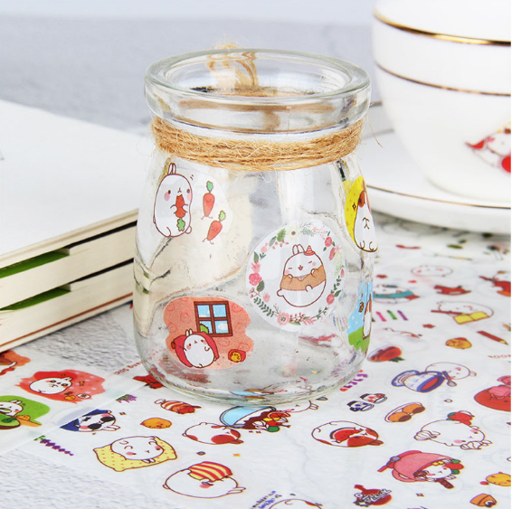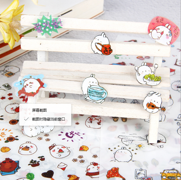 South Korea Stickup Dumb Cute Round Rabbit Children Cartoon Transparent Decoration Stickers Diary album with a pack of 6 sheets