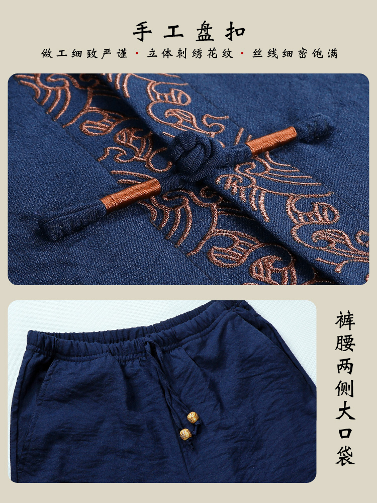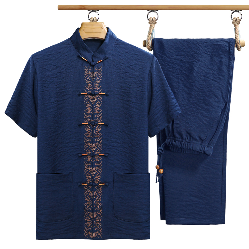 Summer middle-aged Tang men short sleeve suit Chinese wind men's clothing loose button han clothing male middle-aged Tang Father dress