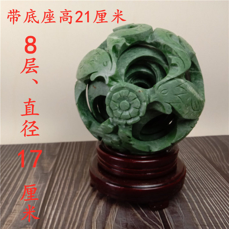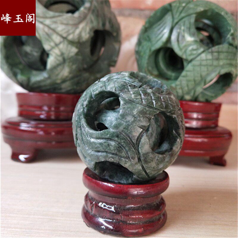 Natural jade Ruishan green cover ball turning center ball concentric ghost workball transfer ball hollowed-out relief through carved round carved dragon crested