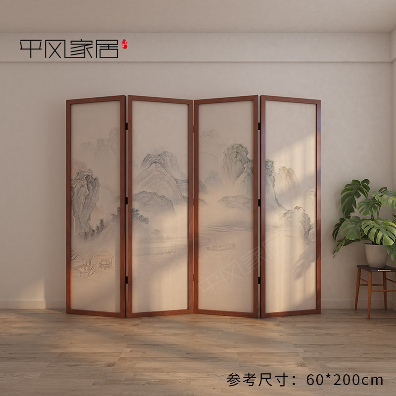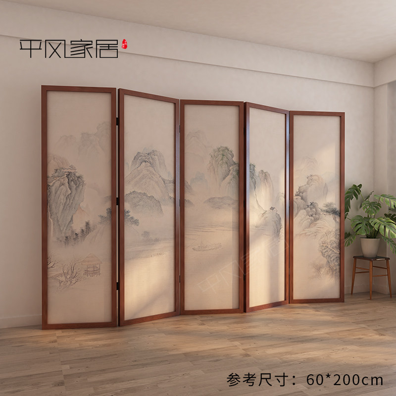 screen partition living room modern simple office tea house hotel solid wood folding mobile folding screen landscape painting