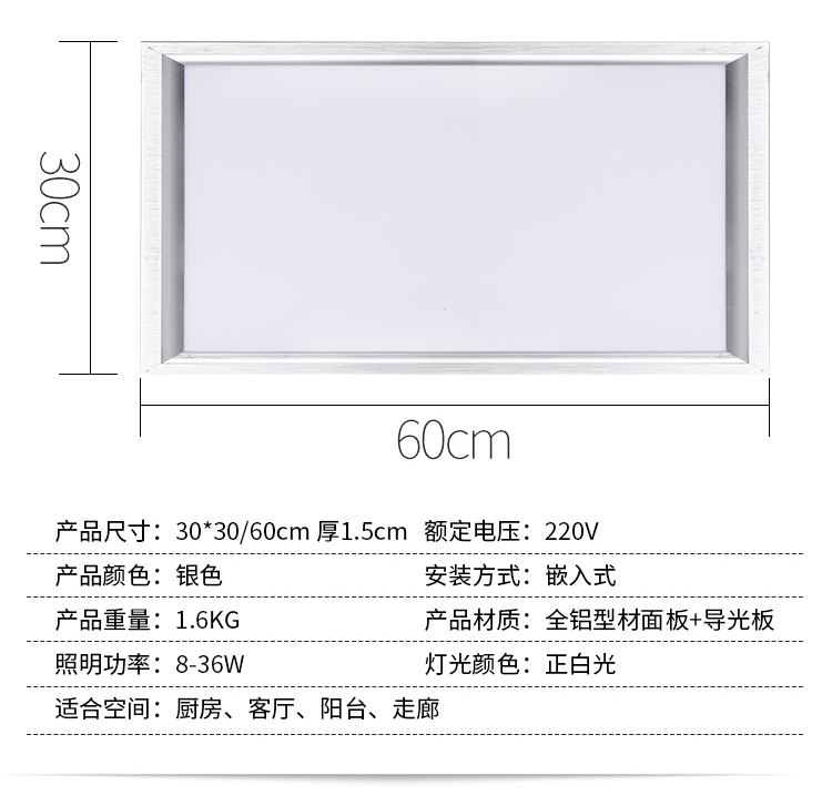 Silver brushed frame 28 watts 300*600