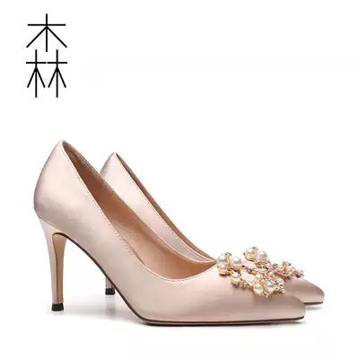 Spring 2020 new pearl rhinestone pointed shallow mouth thin heel shoes chic all-match girl nude high heels