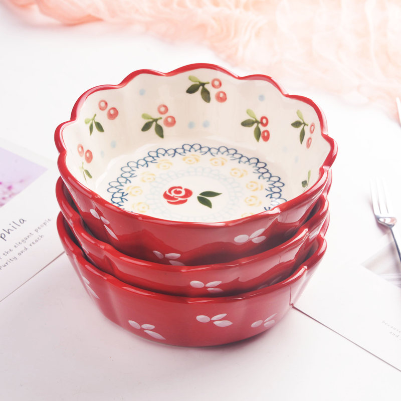 Flowers shape bowls Jane about girls cute rice bowls fruit salad bowls home Korean-style yogurt bowls ins baking bowls
