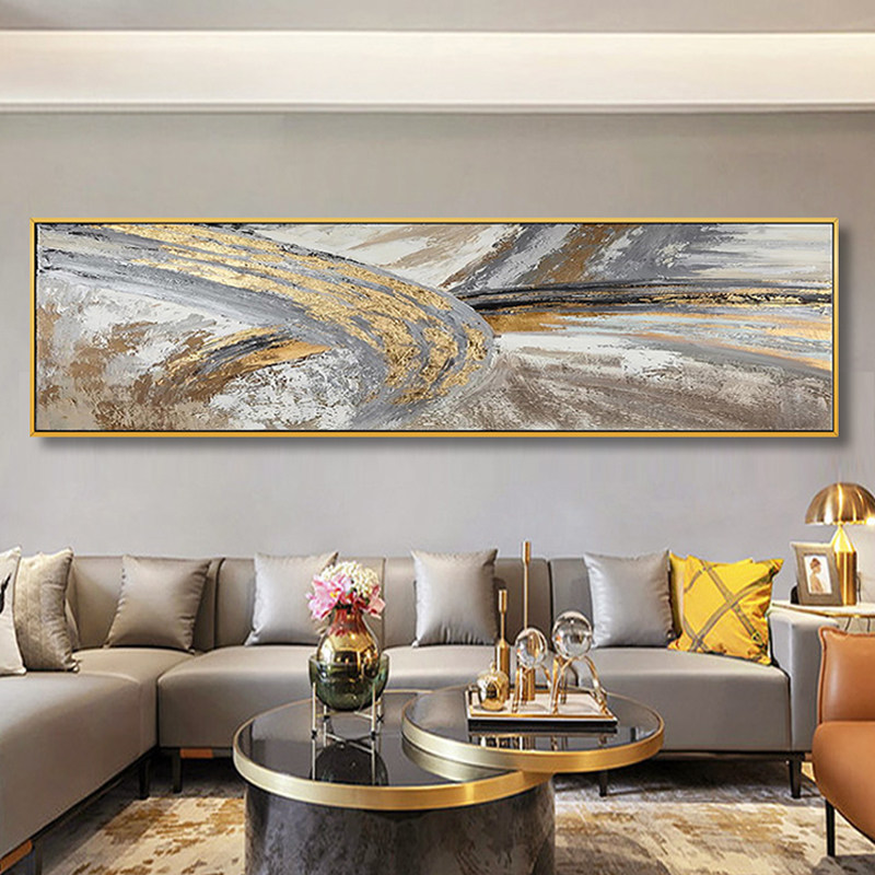 Pure Hand Painted oil painting Modern minimalist American light extravaganza Painted Gold Gray Abstract Color Living-room Bedroom Decoration Painting