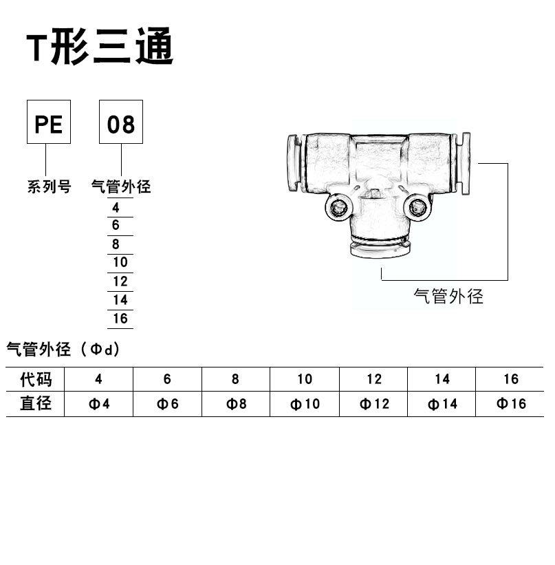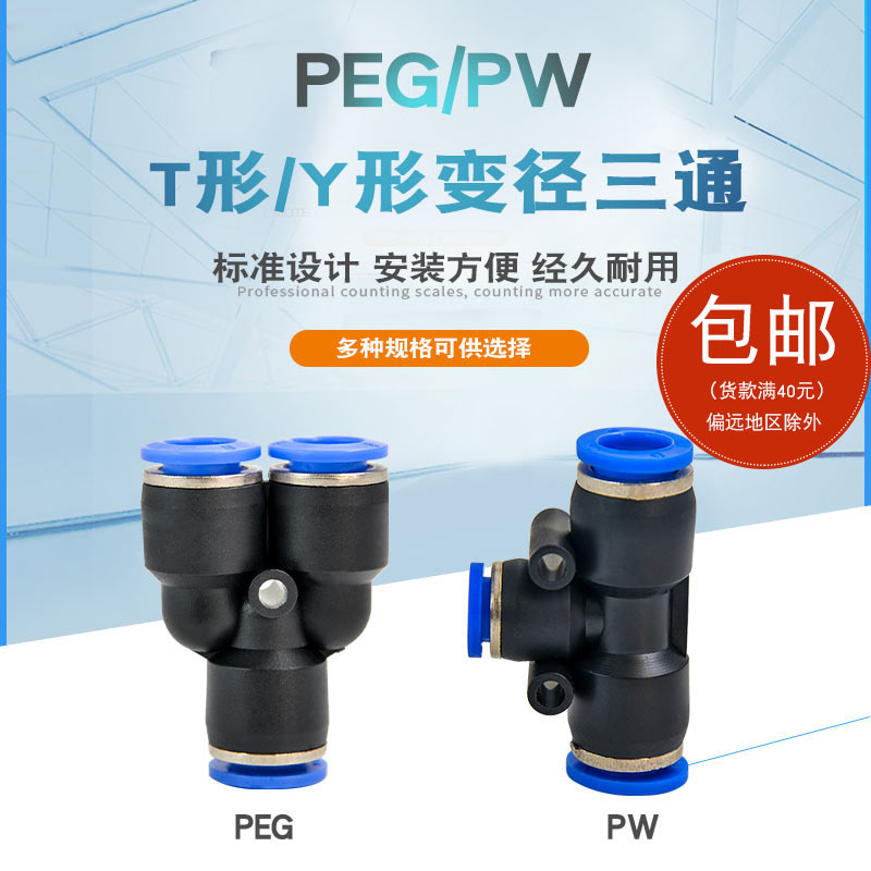 Plastic Y shaped tee PY8 plastic Y deformation diameter tee PW6-4-4 plastic T deformation diameter tee PEG16-12-16 plastic Y shaped tee PY6 plastic Y shaped