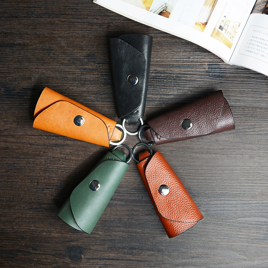 Pastoral Leather Art MOOSHI Handmade Custom Car Key Cover Imported Bull Leather Brief Genuine Leather Lady Key Bag Men