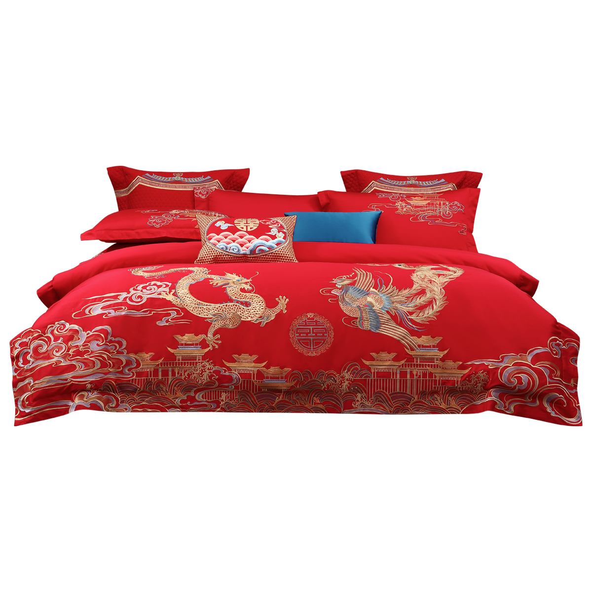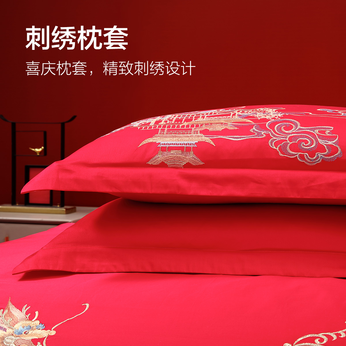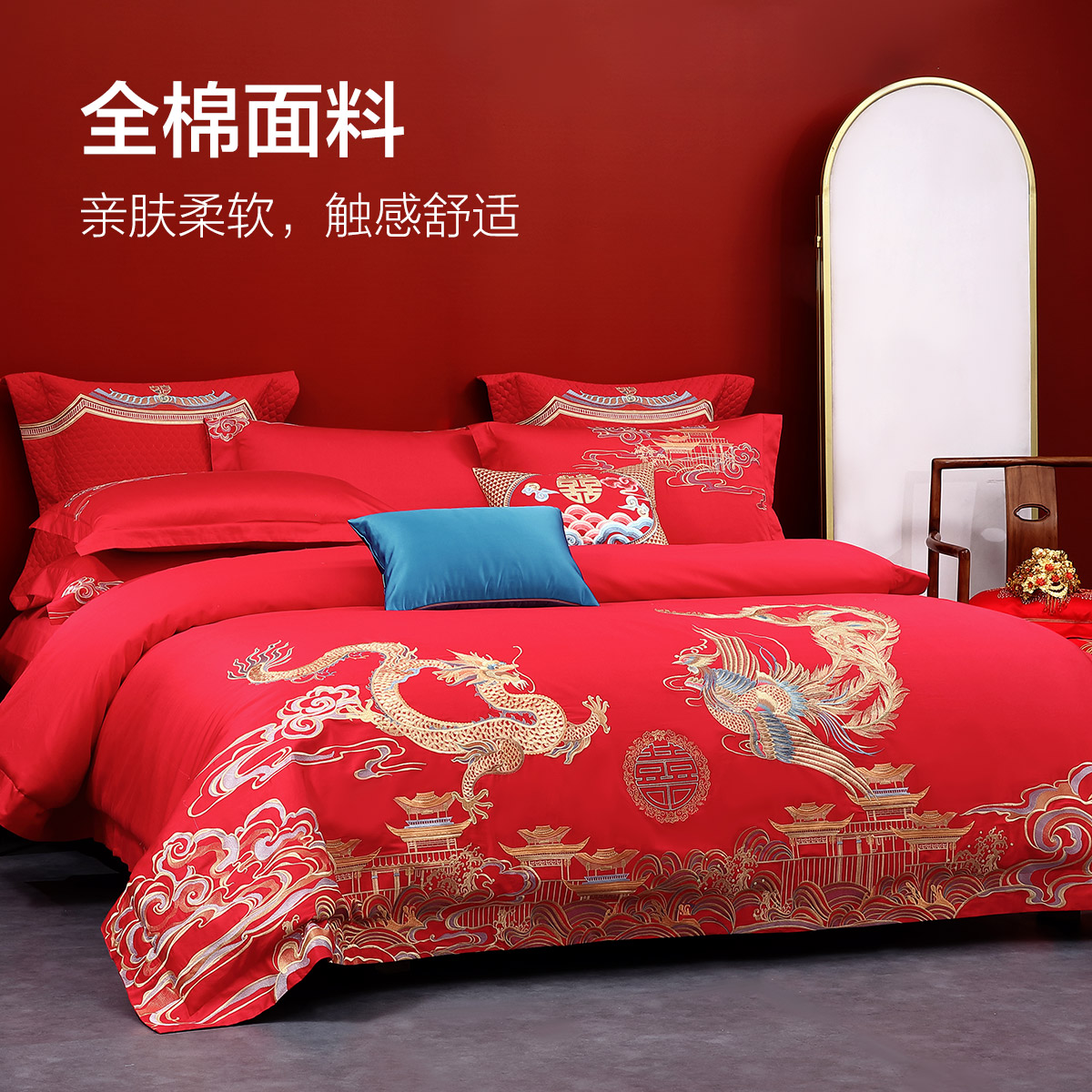 BLISS Bridal Bridal Wedding Embroidered Wedding Embroidered All-cotton Pure Cotton Four Pieces Red Wedding Kit Bed Bedding