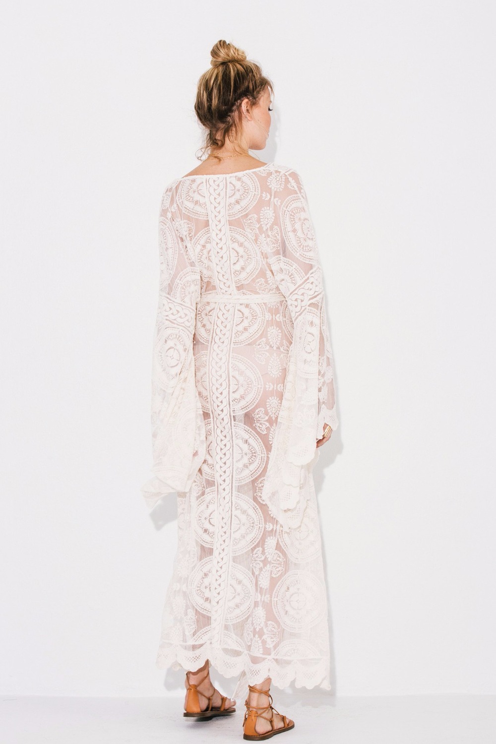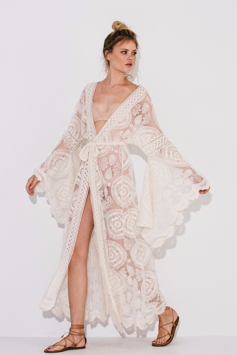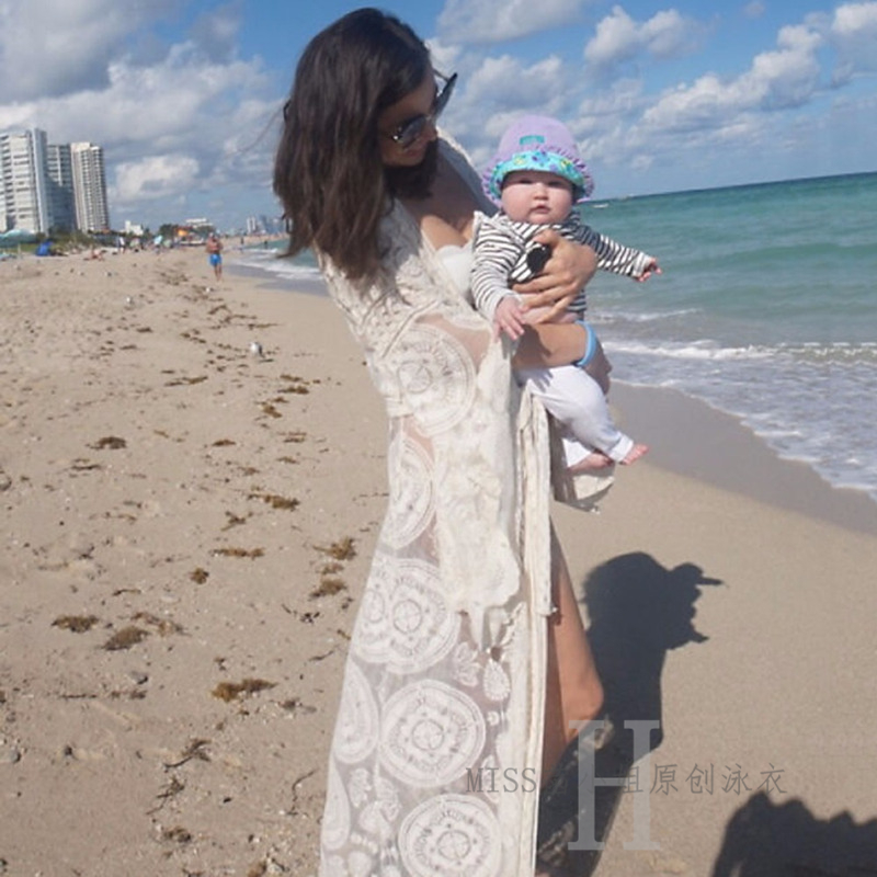 White hollowed-out lace sexy bikini jacket hooded female summer long version of beach outside sunscreen