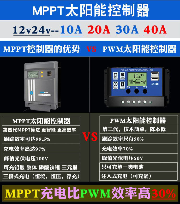 MPPT solar controller 12V24V automatic lithium battery universal photovoltaic panel charger 30A40A