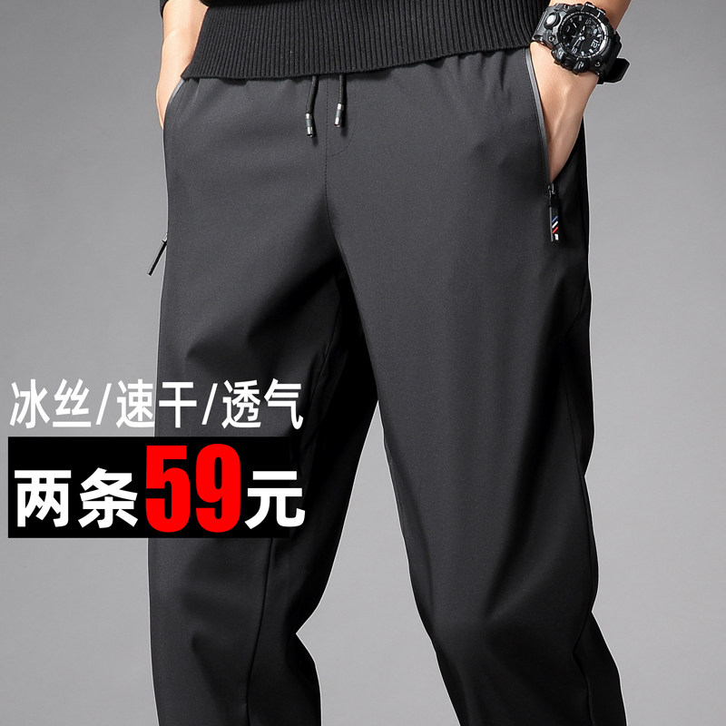 Speed Dry Pants Men's Summer Ultra Slim Ice Silk Cool Pants Bunches Feet Straight Barrel Loose Casual Sports Pants Up For Code Tide