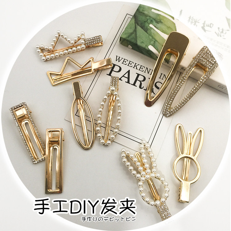 Golden hand-made one-word clip Ins net red hair clip DIY heart-shaped clip duckbill clip Korean version of the hair clip material BB clip